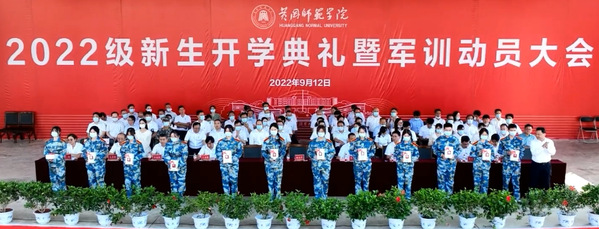 “滔滔长江水,巍巍大别山,东坡赤壁聚英贤。百年黄师,风雨如磐,筚路蓝缕易春秋,薪火永相传……”在校学生合唱团带领下,全体师生齐唱校歌,开学典礼暨军训动员大会在全体师生齐唱校歌的嘹亮歌声中圆满结束。